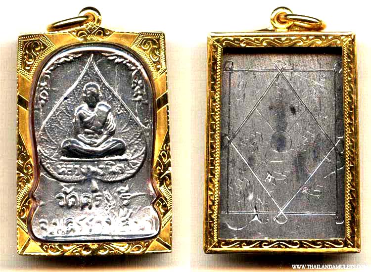 Waterproof goldcase, Silver amulet Luangpu Nin Wat Kornburi 1st batch.