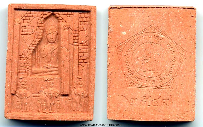 Buddha amulets, red earth holy powder batch "Grung Gao" the old era. Image of Buddha from Wat Mongkonborpit blessing. One good amulet.