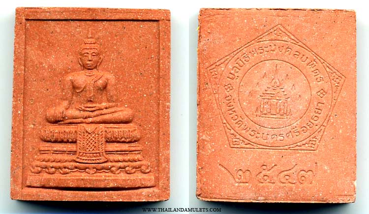 Buddha amulets, red earth holy powder batch "Grung Gao" the old era. Image of Buddha from Wat Mongkonborpit blessing. One good amulet.