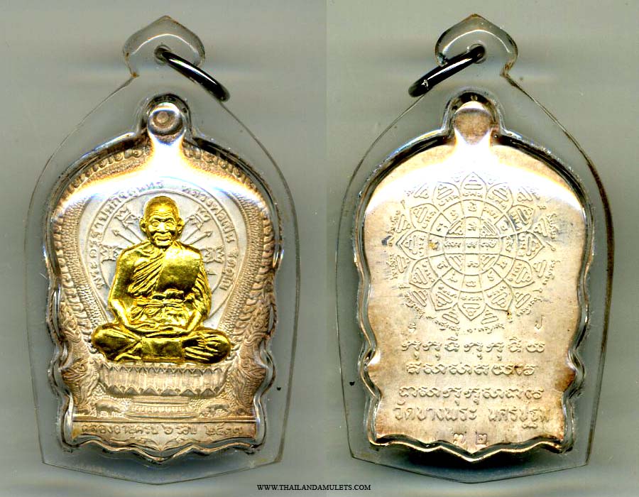 Luangpor Pern WatBarngphra. Good old batch by Luangpor Pern, silver amulet with gold plate image of Luangpor Pern meditate.