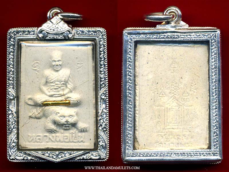 Luangpor Pern holy powder riding tiger amulet, gold trakrut chanted by Luangpor Pern attached. Luangpor Pern hairs attached, precious batch.