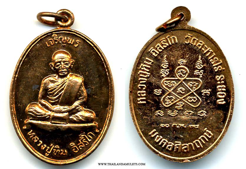 Luangpu Tim's amulet, batch "Mongkon Silalerk" placed altar ceremony in b.e.2537. Powerful blessing strong protection and good fortune. The amulet is beautiful designed, backside the blessing mantra of Luangpu Tim.