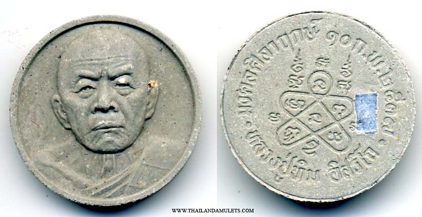 Luangpu Tim's amulet, bless/chant by Luangpu Tim at WatLaharnrai, batch "Mongkon Silalerk" placed altar ceremony 10 Febuary b.e.2537. Powerful blessing strong protection and good fortune. The amulet is beautiful designed, backside the blessing mantra of Luangpu Tim.
