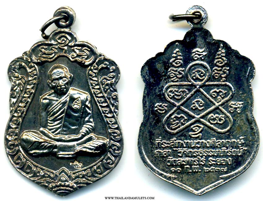 Luangpu Tim's amulet, batch "Mongkon Silalerk" placed altar ceremony in b.e.2537. Powerful blessing strong protection and good fortune. The amulet is beautiful designed, backside the blessing mantra of Luangpu Tim.