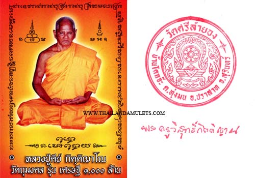 Luangpu Key Gitthiyanoh, holy items batch "Sretthi PunLarn" Billionair fortune 7 October b.e.2551. Bless/chant by Luangpu Key WatSrilumyong. Powerful blessing holy item.