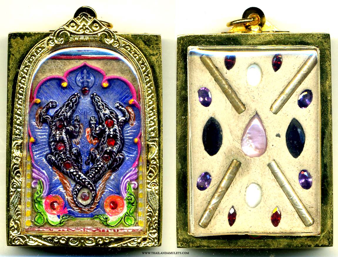 Description PhyaGoompi Kinf of Crocodile by Kruba Krissana Intawanno WatWeruwan. Regards the 500 previous life of Buddha, once was PhyaGoompi. Powerful blessing the best of Thailand amulet.