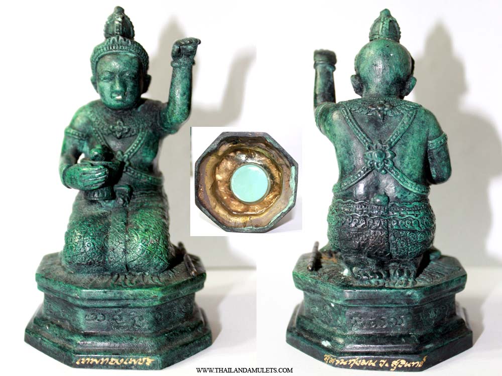 Special blessed again by Luangpu Hong. Gumarnthong Thepthongpeth made in b.e.2545(2002), blessing to bring good wealth fortune, good luck, successful to all wishes and protection. Powerful god statue consecrated by great guru monk of Thailand, rare and precious.