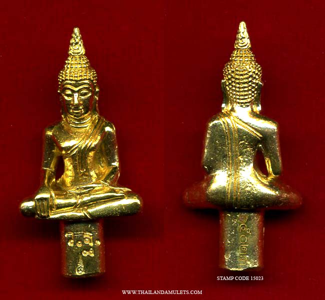 Phra YodThong is a buddha amulet with "Pang Chana-Marn" posture, placed on top of the battle flag during warring state. To conquer victory over enemy, evils/darkness, obstacles and dangers. Consecrated with Pa-Hung mantras, which is the power of Buddha to destroy evils and obstacles.