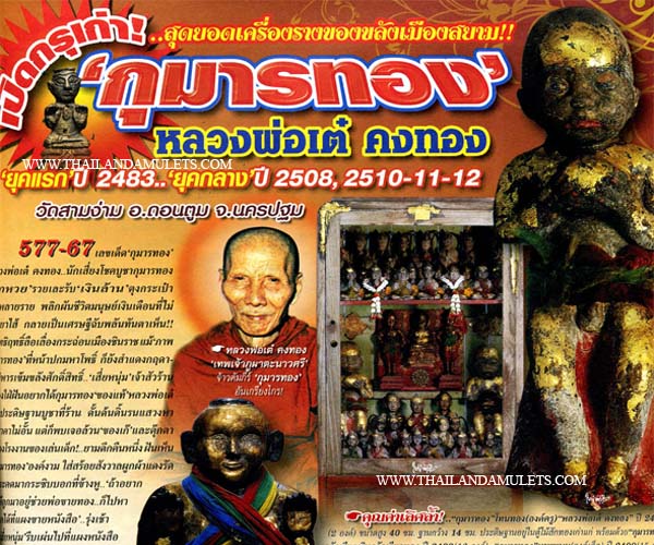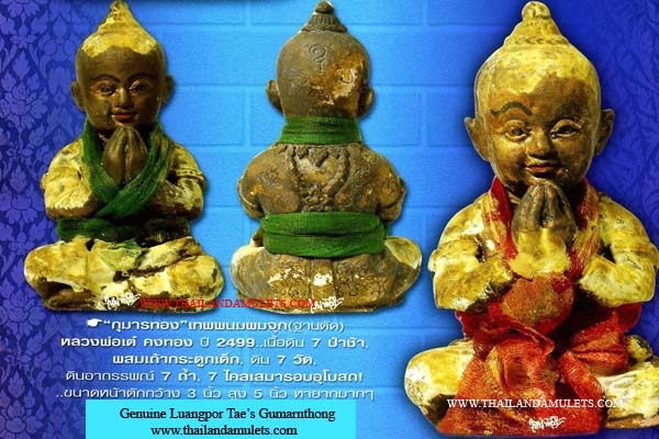 Posted by many famous magazines both Thailand/Oversea for the best Lp.Tae's Gumarnthong collections provided at Thailandamulets.com. Gumarnthong Srong MahardThai, Gumarnthong Gler-Gaw, Gumarnthong Tone-Thong , Si-Pueng chanted wax Gumarnthong by Luangpor Tae. These set make the best set of collection and powerful blessing Gumarnthong in Thailand.