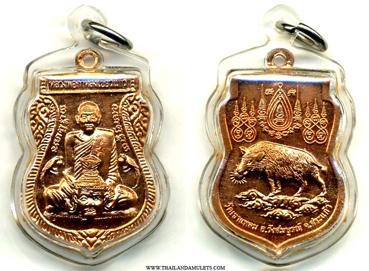 Luangpu Garlong, abbot of WatKaolam temple. Rean Mu-Par copper.