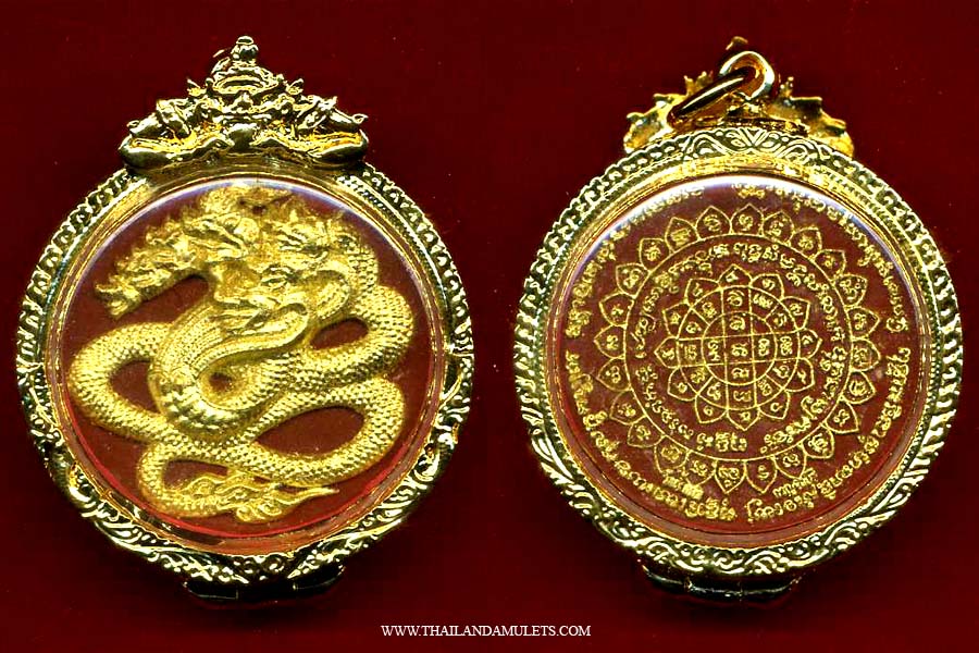 Luangpor Watchara, abbot of WatTumfad. Famous disciple of Luangpor Sumrith in the past. Dragon amulet blessing great protection and fortune to wearer.
