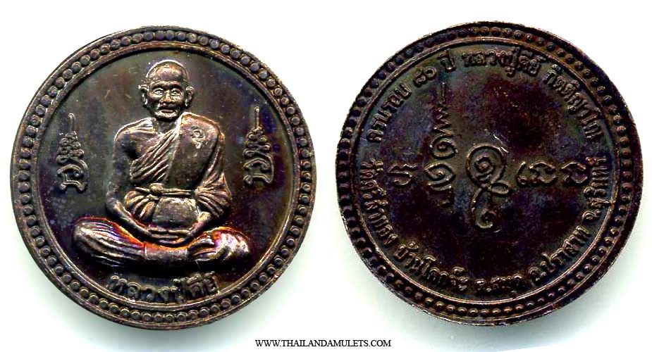 Luangpu Key blessed/chanted ceremony b.e.2550 80 years old celebration at WatSrilumyong. Luangpu Key copper rean amulet, craft with Na mantra, blessing good fortune and protection.
